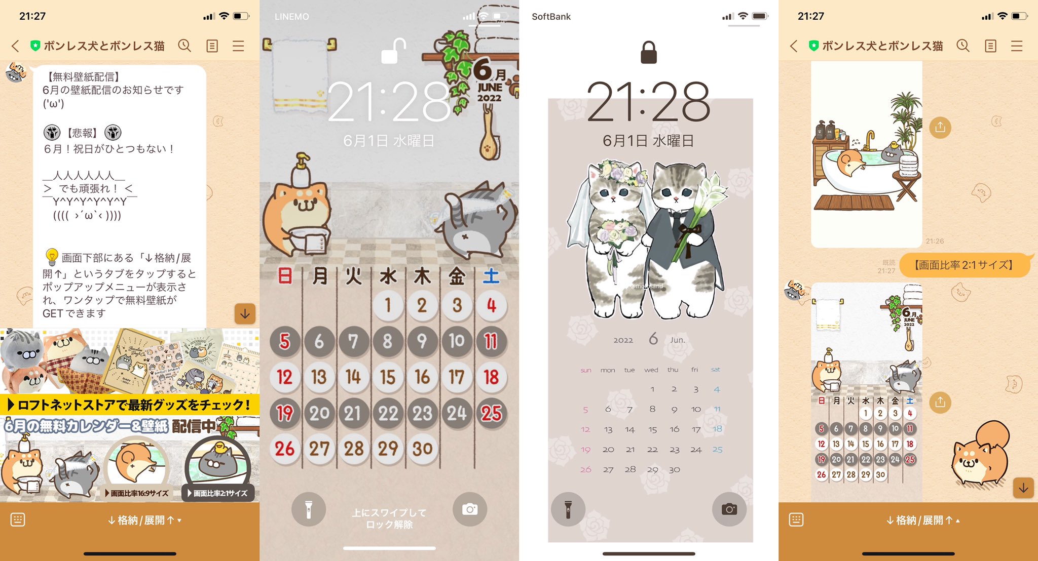 6月のカレンダーをiPhone 11 Pro にセットだん。もふ屋 ボンレス犬猫さんと mofusand さん。 https://twitter.com/nilab/status/1531977361545015298/photo/1