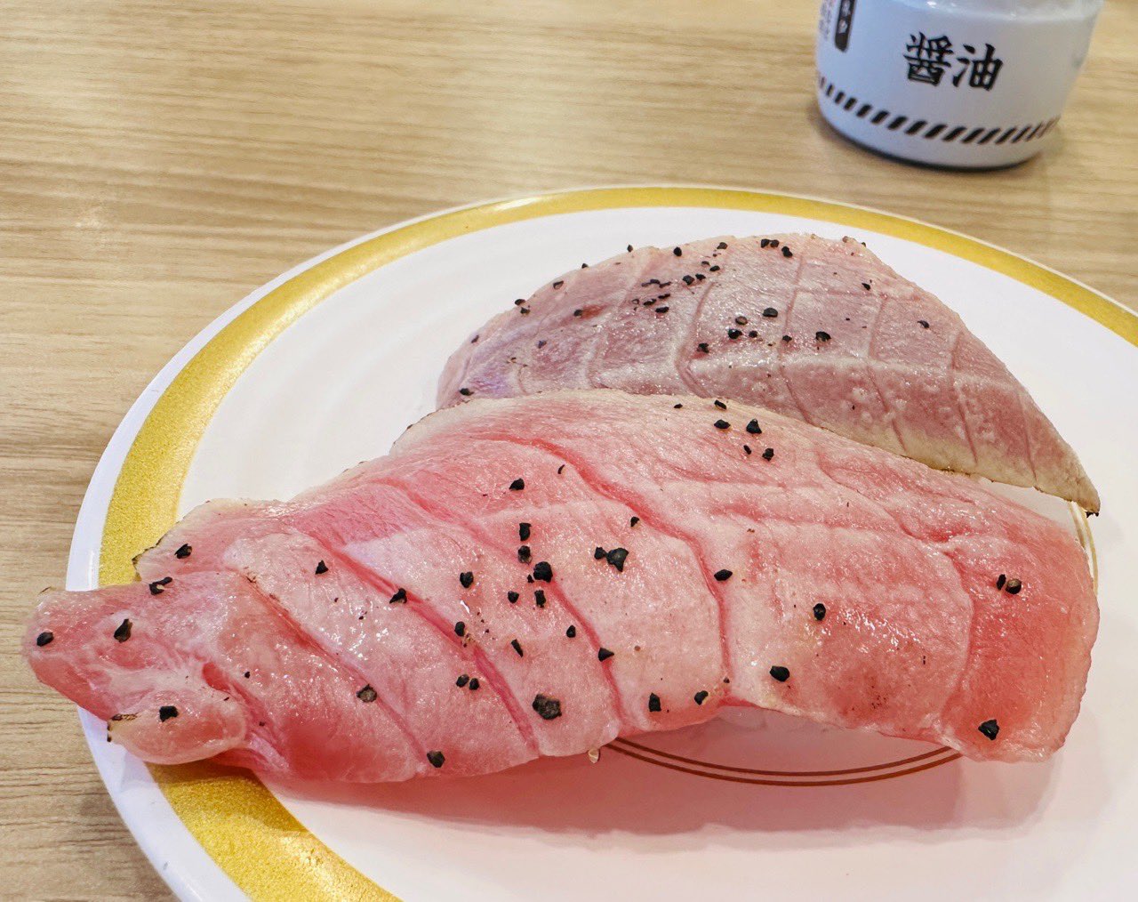 ステーキ風 大切りまぐろはらみ炙り at かっぱ寿司 https://twitter.com/nilab/status/1581566116039913473/photo/1