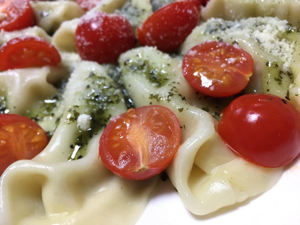 紀文食品 パッとパスタ バジルソース  見た目が餃子みたい(´Д` )