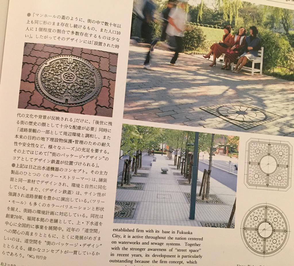 日之出水道機器株式会社のカラー・ストリーマー。舗装面と同一素材でデザインし、環境と自然に同化。 「マンホールの蓋のように、街の中で数十年以上も同じ形のまま存在し続ける」「設置された時代の文化や背景が反映」  サイン・コミュニケーション