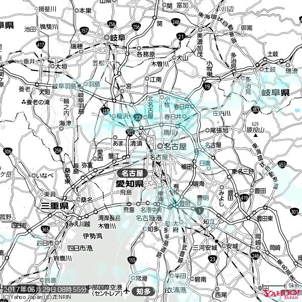 名古屋の天気(雨) 降水強度: 0.45(mm/h)  2017年06月29日 08時55分の雨雲  #雨雲bot #bot