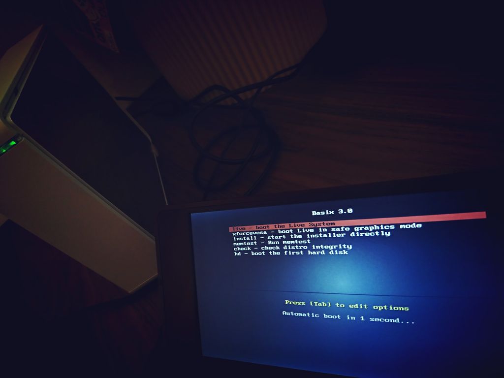 VAIO type P の外付けDVDドライブに入れた Basix 3.0 が起動したけど TAB キーが効かないし Automatic boot in 1 second... と表示されたまま停止。何を間違えているんだろう。。。 https://twitter.com/nilab/status/912653986821414914/photo/1