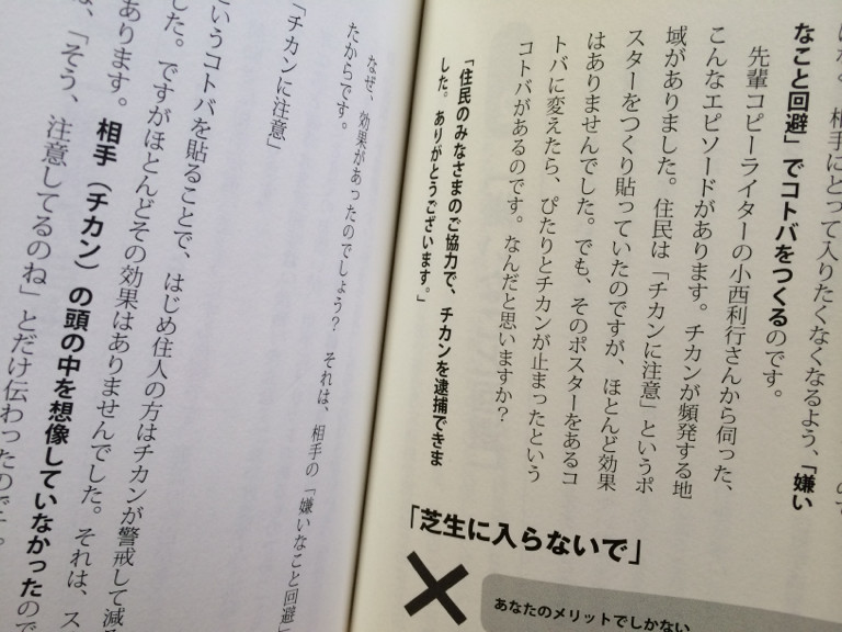 -nilog: 「チカンに注意」というポスターより「住民のみなさまのご協力で、チカンを逮捕できました」で対応。 - 伝え方が9割 / 佐々木圭一 (2014-01-25)