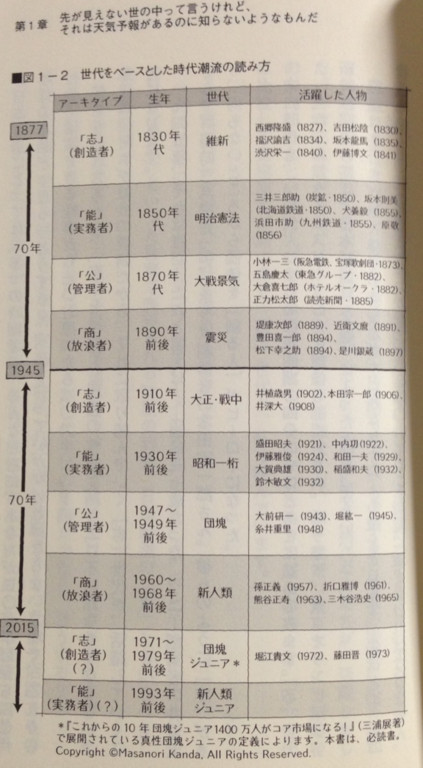 -nilog: 先が見えない世の中って言うけれど、それは天気予報があるのに知らないようなもんだ。歴史は70年周期で巡っている。志・能・公・商。 - 2022−これから10年、活躍できる人の条件 http://t.co/0BxWDkcjoB (2013-09-16)