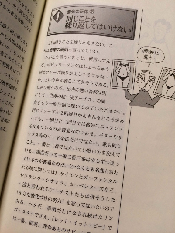 -nilog: 2回同じことを繰り返さない。同じフレーズでも、一回目と二回目では微妙にニュアンスを変える。 - 音楽の正体 / 渡邊 健一 http://t.co/ydNUcaAu0j (2013-12-15)