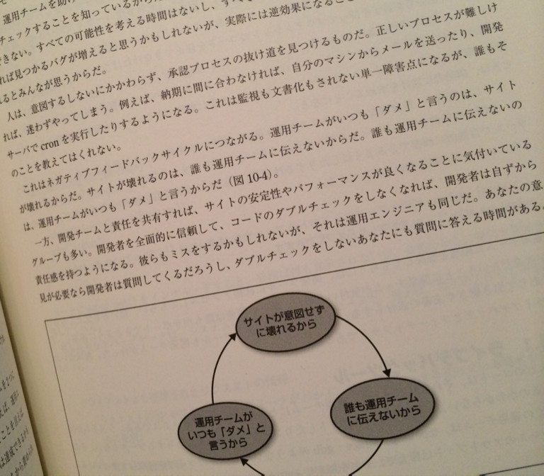 -nilog: 「人は、意図するしないにかかわらず、承認プロセスの抜け道を見つけるものだ。正しいプロセスが難しければ、迷わずやってしまう」 - ウェブオペレーション ―サイト運用管理の実践テクニック / John Allspaw (2014-05-02)