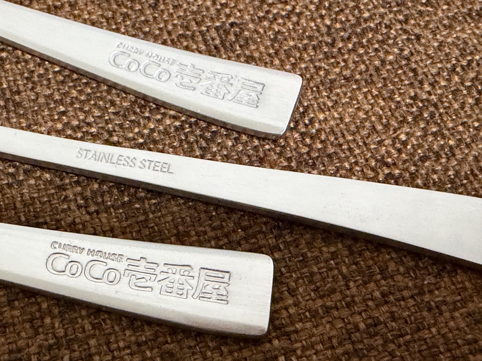 -nilog: うちにあるココイチのスプーンはたぶんこれで全部。オリエンタルカレーのスプーンとパスタ・デ・ココのフォークはそれぞれ2本ずつ。 (2026-02-12)