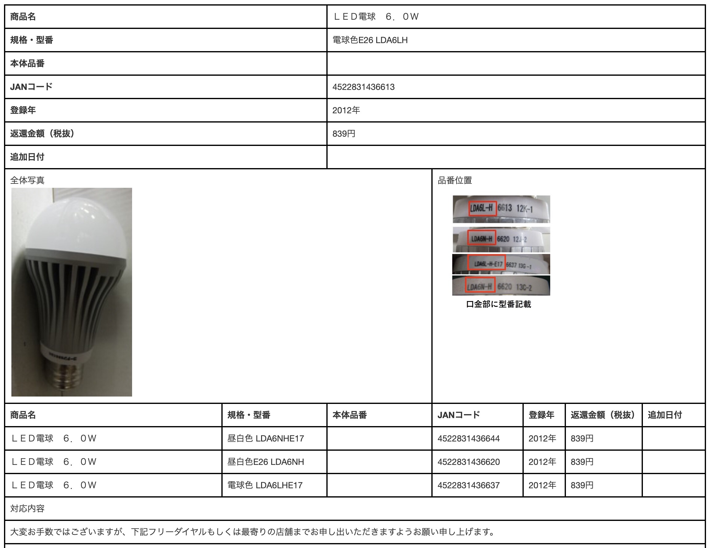 -nilog: コーナン LED電球 LED Life-BALL LDA6L-H はリコール対象っぽい。。。 コーナンお客様サポート(自主回収商品検索) (2026-04-15)