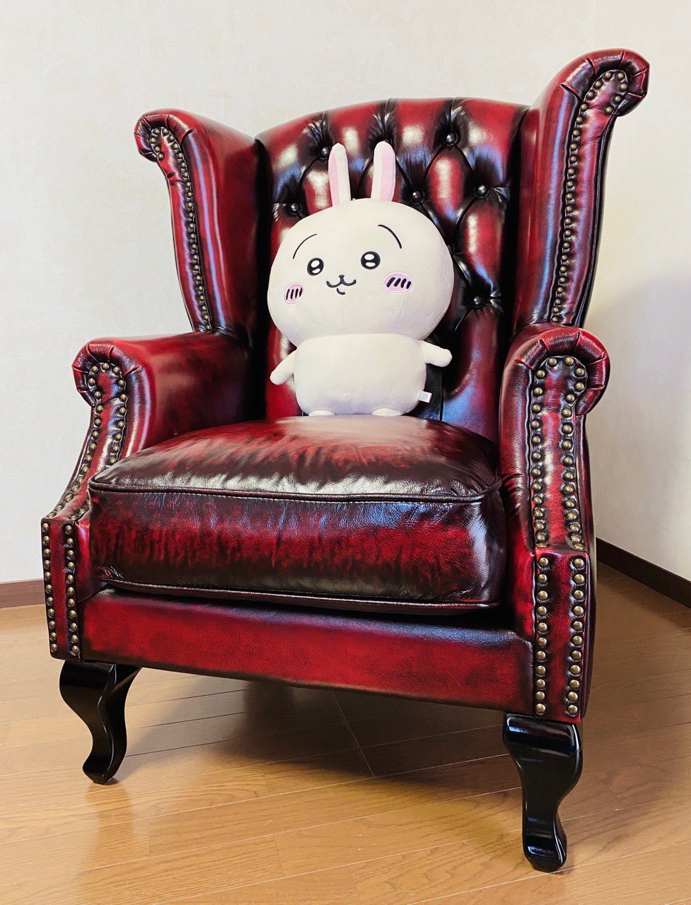 -nilog: ちいかわ うさぎ 超BIGぬいぐるみ with チェスターフィールド ウイングバック チェア (2022-07-28)