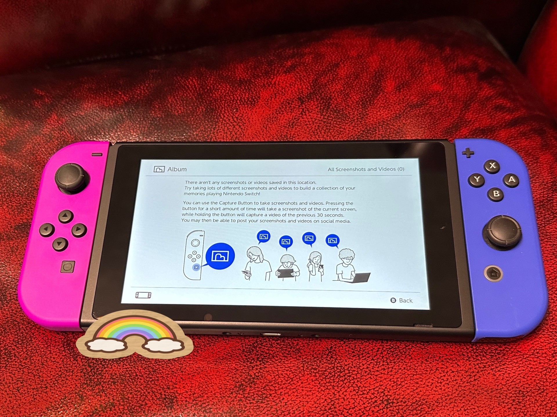 -nilog: Nintendo Switch There aren't any screenshots or videos saved in this location. Try taking lots of different screenshots and videos to build a collection of your memories playing Nintendo Switch! You can use the Capture Button to take screenshots and videos. Pressing the button for a short amount of time will take a screenshot of the current screen, while holding the button will capture a video of the previous 30 seconds. You may then be able to post your screenshots and videos on social media. (2024-06-02)