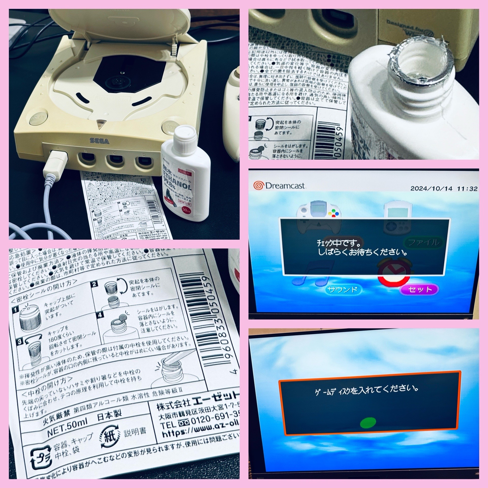 -nilog: ドリームキャストにゲームディスクをセットしてみても「ゲームディスクを入れてください。」と表示されてしまう。ヨドバシ.comにて598円で購入した「エーゼット AH050 AZ 無水エタノール 99.8% 50ml」でレンズを掃除してみたが、改善されず。それはそうとエタノール容器の密封シールがきれいにはがせなかった。。。 (2024-10-14)
