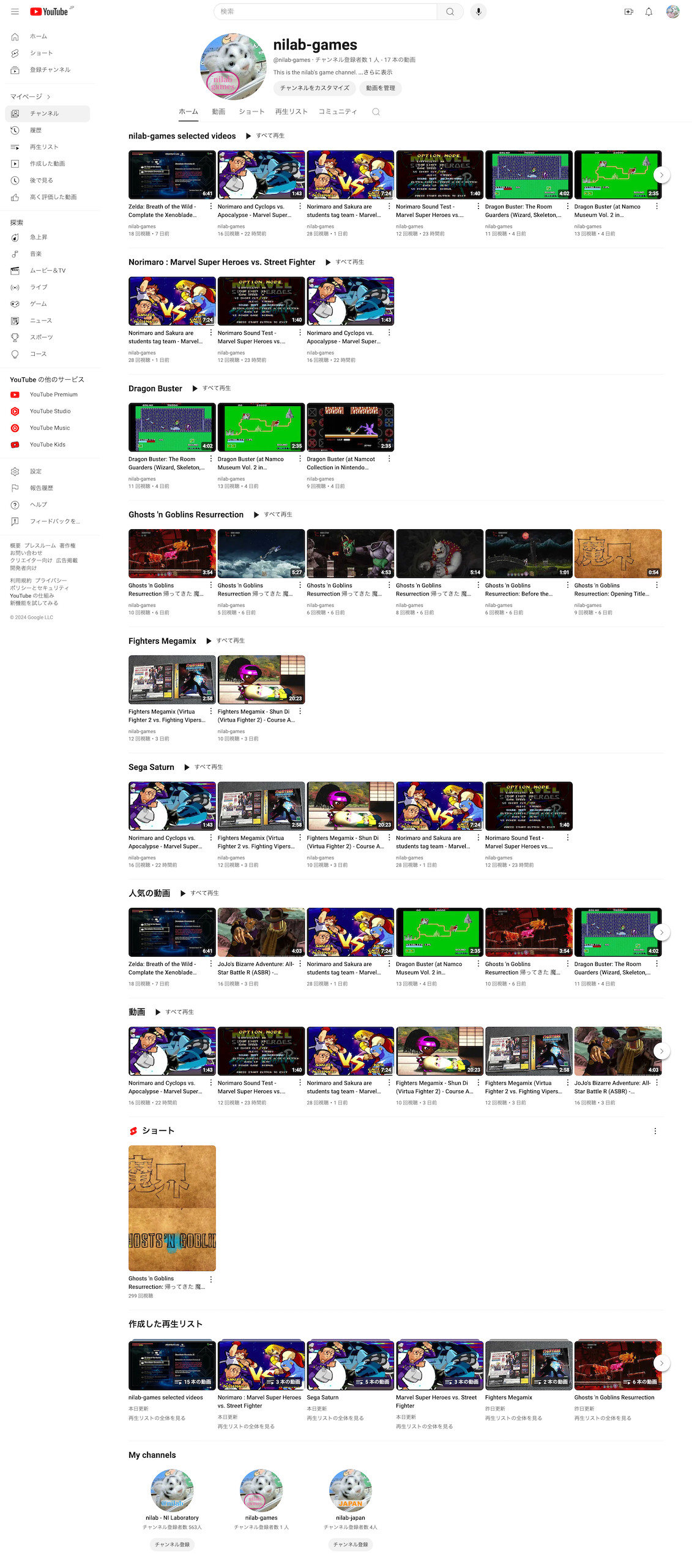 -nilog: 帰ってきた魔界村の動画を新しいチャンネルに移動した。通常動画6本とショート動画1本。 nilab-games - YouTube @nilab-games (2024-08-25)