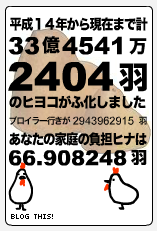 日本の借金時計を1日中ぼけぇっと見てたんですが、あまりの酷い数字にうんざり。どうせ見るならハッピーでピッピーな数だよな、という思いで作りました。過去4年の統計データをもとに、リアルタイムなひなの累計ふ化数を算出しています。