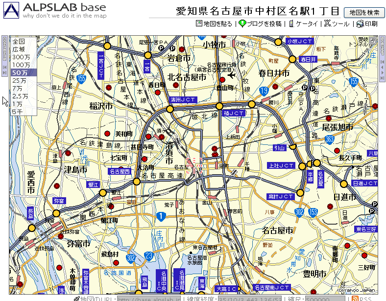 なぜか ALPSLAB base では栄周辺の地図がやけに詳細(Yahoo!地図よりも詳細)。