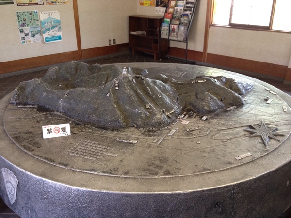 岐阜城に到着。入口の手前に「ぎふ・いざナビ」のQRコード。
