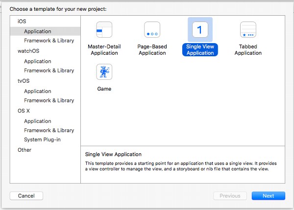 - Xcode で新規に Single View Application のプロジェクトを作成