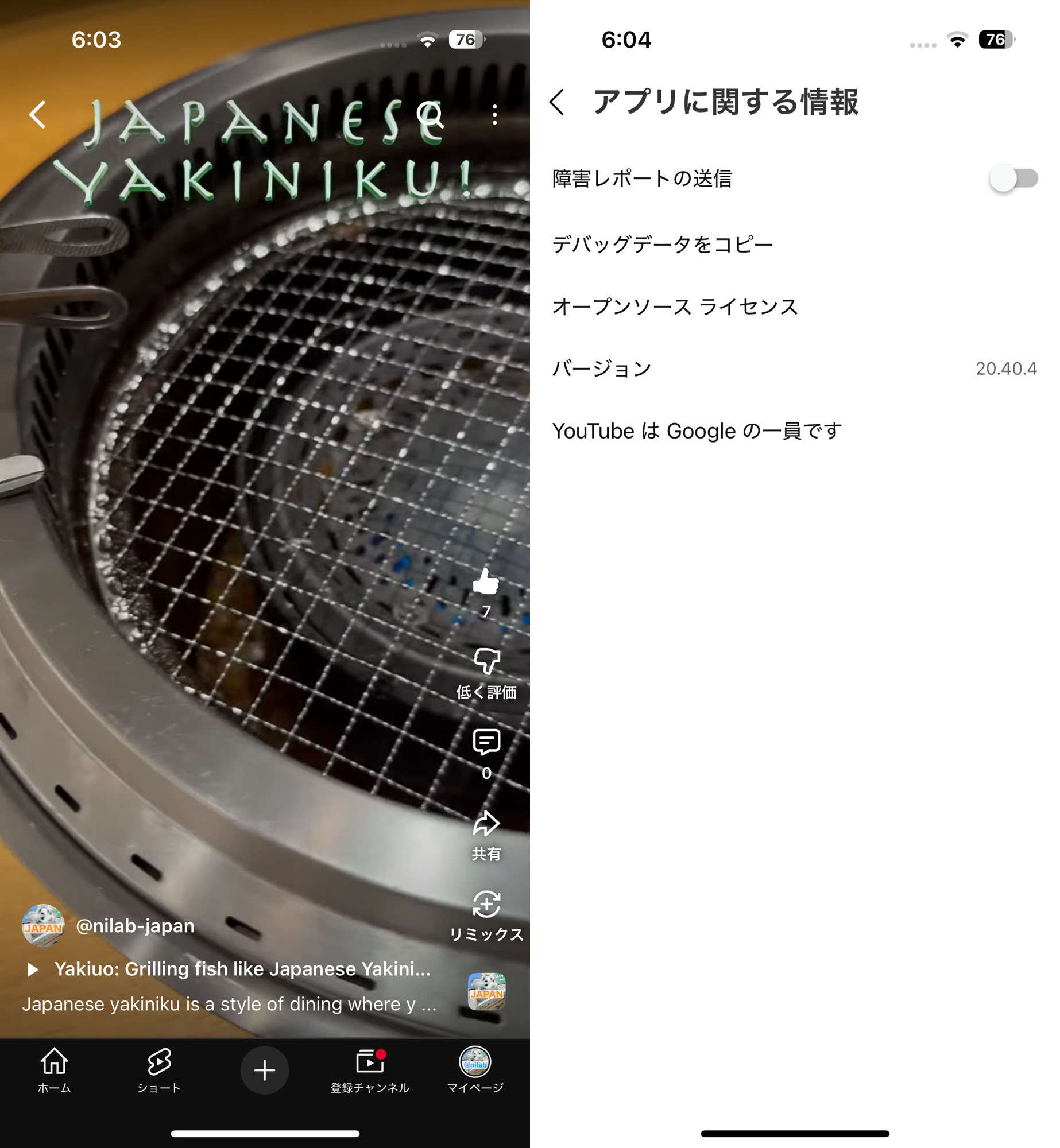 iPhone 17 Pro + iOS 26 + YouTube アプリ 20.40.4