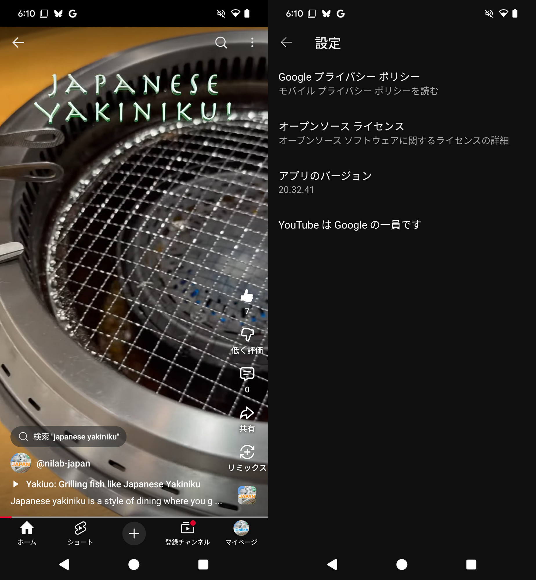 Pixel 7 Pro + Android 15 + YouTube アプリ 20.32.41